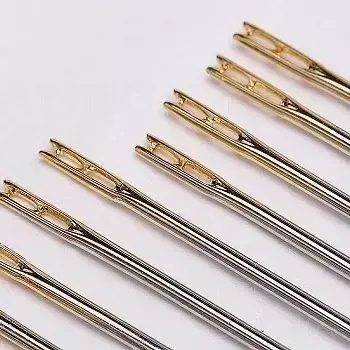 Agulhas de costura com sistema fácil de passar a linha, ideal para pessoas com deficiência visual ou cegos.